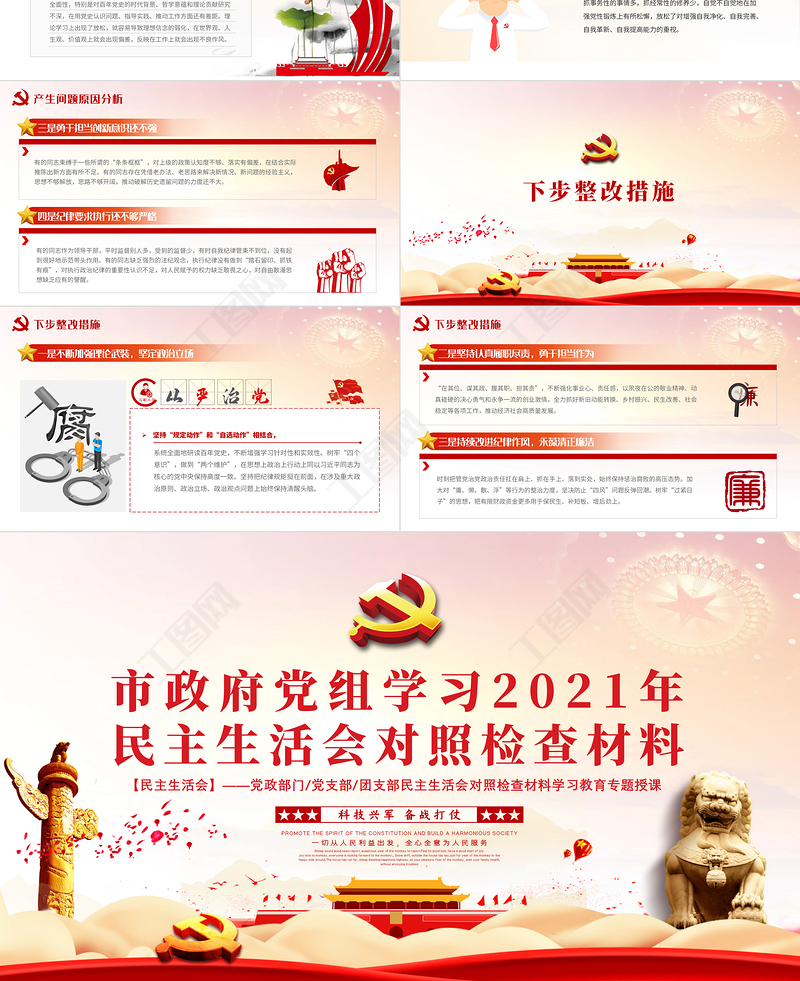 工圖網(wǎng)提供市政府黨組學(xué)習(xí)2021年民主生活會(huì)對照檢查材料PPT黨政風(fēng)黨支部團(tuán)支部民主生活會(huì)學(xué)習(xí)教育專題授課課件供會(huì)員免費(fèi)下載。更多精彩黨課PPT素材,盡在工圖網(wǎng)。
