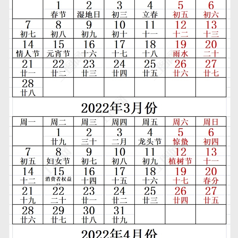 2022年日歷 2022年掛歷 2022年臺歷 Array