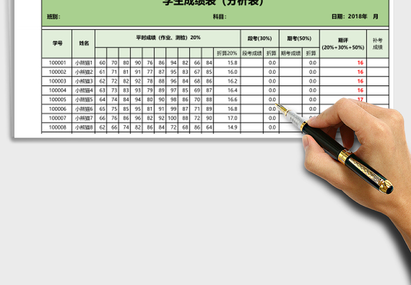 班級(jí)學(xué)生成績(jī)表(分析表)