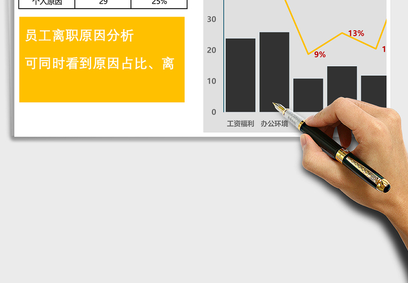 2021年條形折線2018年員工離職原因分析圖黑免費(fèi)下載
