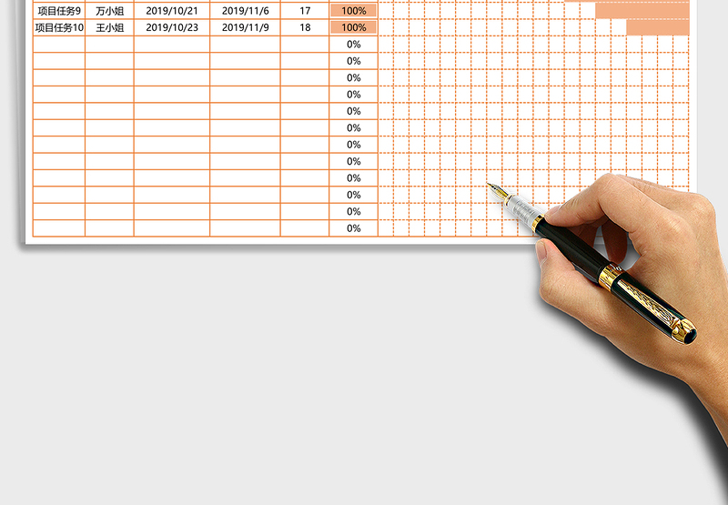 橙色項(xiàng)目流程甘特圖excel模板Excel模板 Array