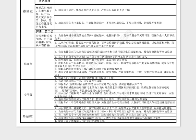 極端天氣時安全生產(chǎn)應(yīng)急預(yù)案Excel
