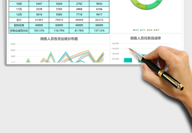 清新銷售人員全年業(yè)績統(tǒng)計表excel模板