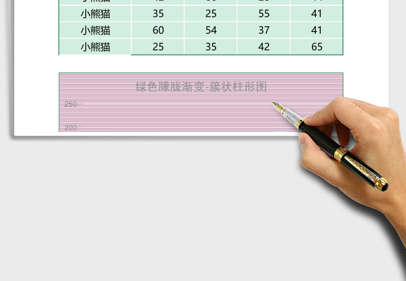 綠色漸變霧面磨砂堆積柱形圖excel模板