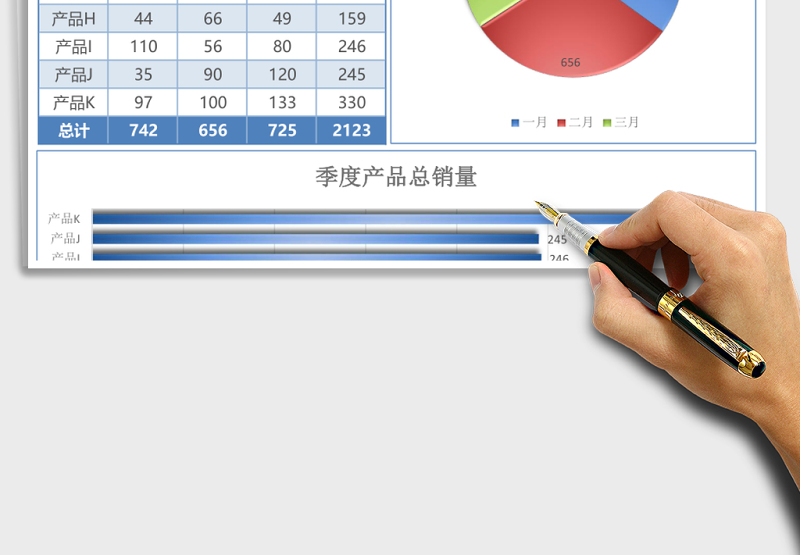 藍(lán)色季度產(chǎn)品銷量分析總計(jì)excel模板