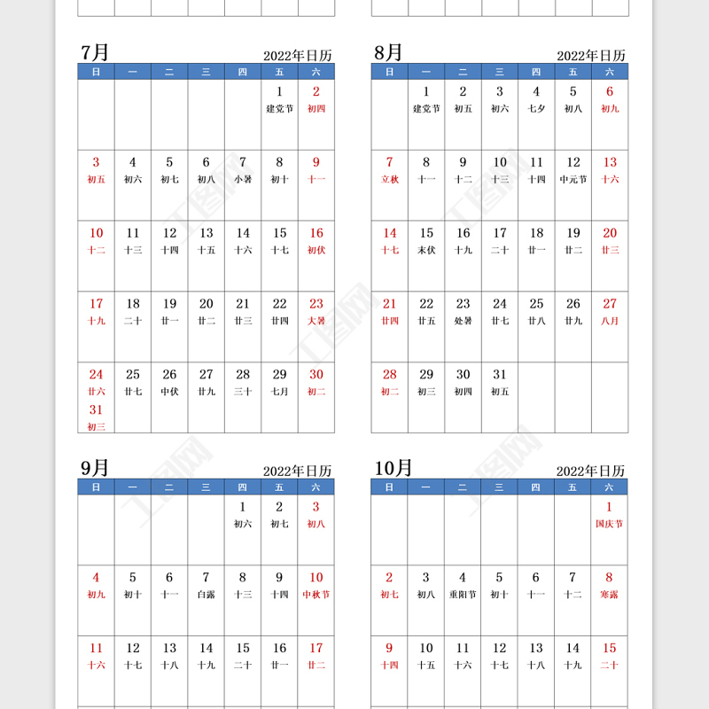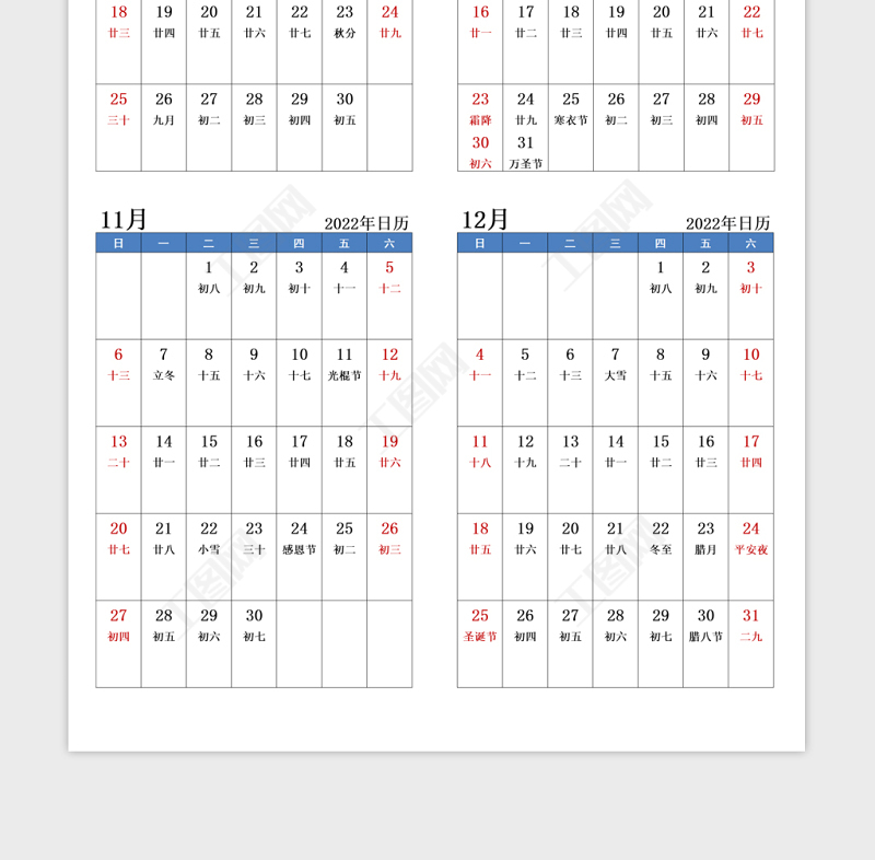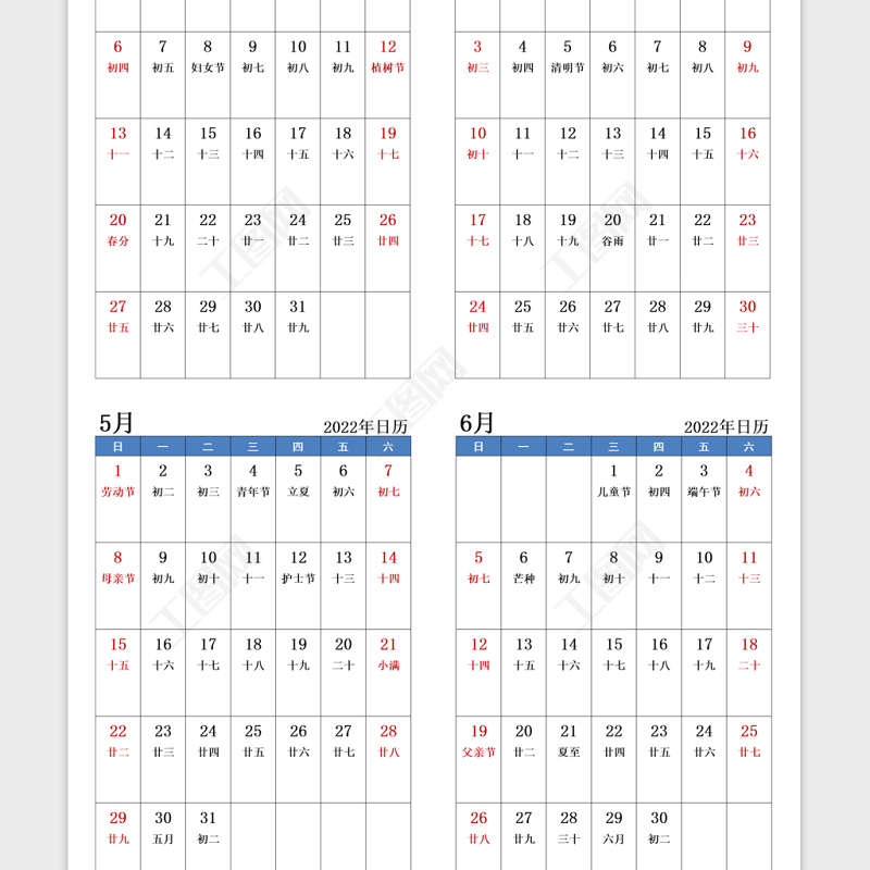 2022年日歷 2022年掛歷 2022年臺(tái)歷 Array