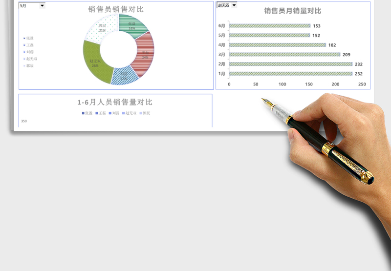 > 銷(xiāo)售/采購(gòu) > 藍(lán)色半年銷(xiāo)售動(dòng)態(tài)分析組合圖excel模板.XLSX 【圖片、文字、動(dòng)畫(huà)均可編輯】