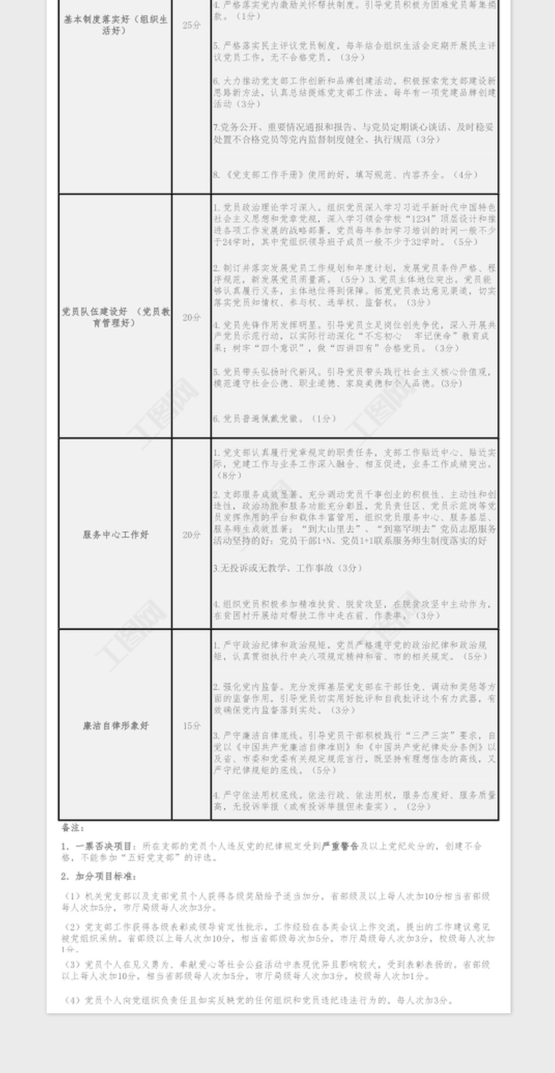 工圖網(wǎng)提供2023年機關(guān)黨支部建設(shè)標(biāo)準(zhǔn)暨“五好黨支部”考評表供會員免費下載。更多精彩黨課PPT素材,盡在工圖網(wǎng)。