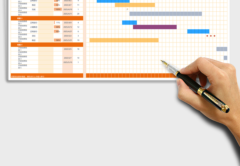 橙色工作計(jì)劃甘特圖Excel表格模板