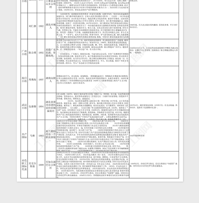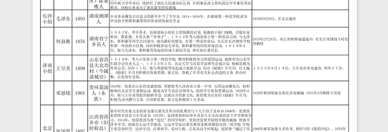 > 黨政機(jī)關(guān) > 1921年中國共產(chǎn)黨第一次全國代表大會(huì)的代表簡(jiǎn)介表.XLSX 【圖片、文字、動(dòng)畫均可編輯】