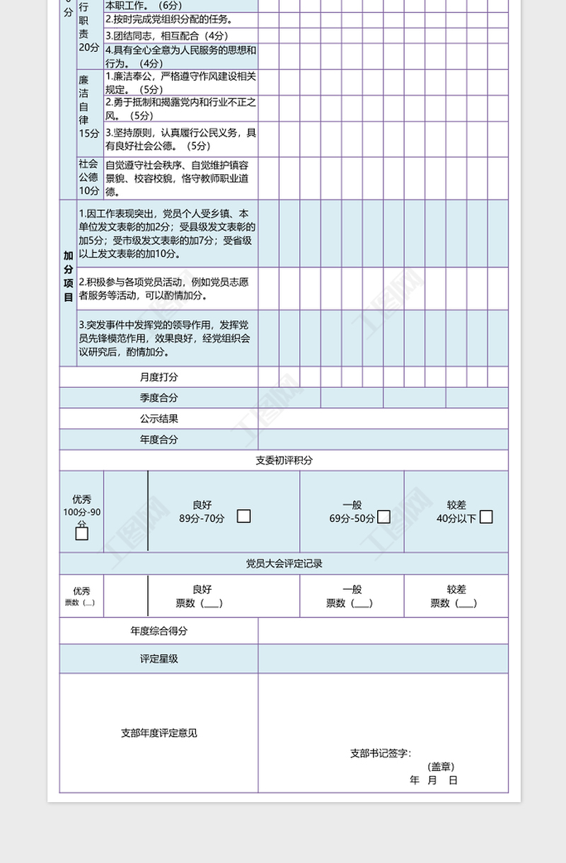 工圖網(wǎng)提供2023簡潔風黨支部黨員積分登記表excel表格供會員免費下載。更多精彩黨課PPT素材,盡在工圖網(wǎng)。