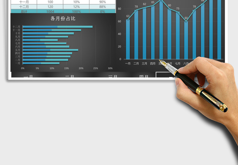 全年12月各月份數(shù)據(jù)占比分析表Excel模板表格