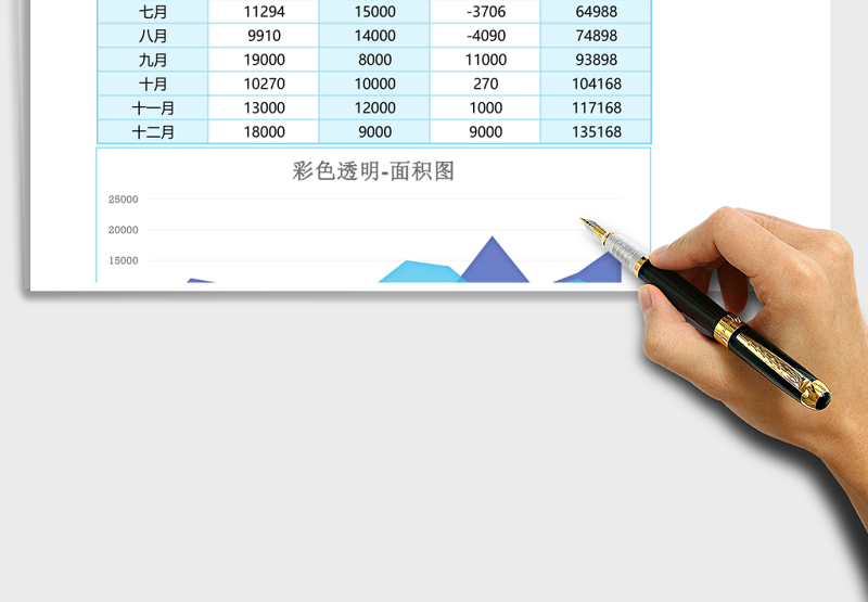 藍(lán)色年度銷售業(yè)績分析面積圖Excel模板