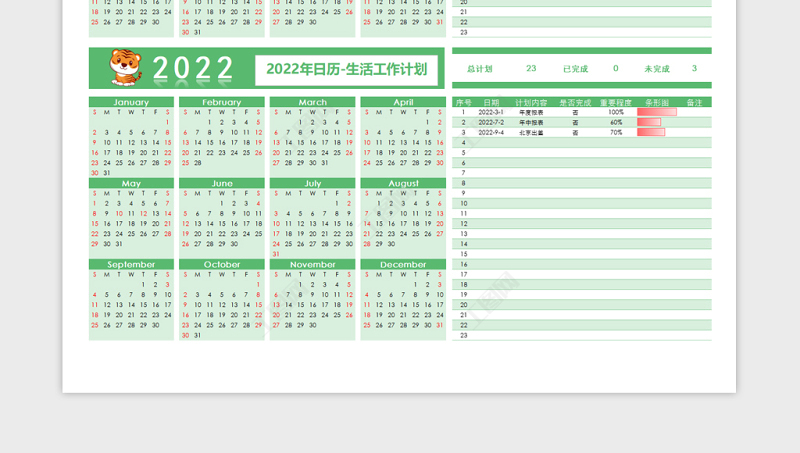 2022虎年綠色清新日歷表 2022年歷表格 虎年年歷 日歷 日歷表格日歷 計(jì)劃行程表 生活日歷表 工作日歷表 Array