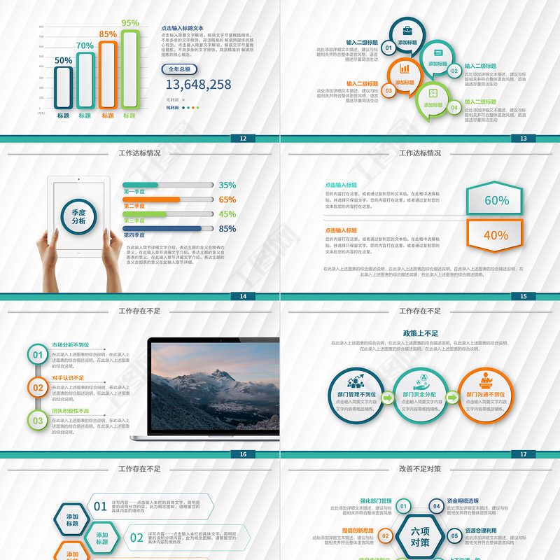 12年度計劃完成1002003004005006007008000(萬元)50%標題標題標題標題70%85%95%點擊輸入簡要文字解說,解說文字盡量概括精煉,不用多余的文字修飾,簡潔精準的 解說所提煉的核心概念。點擊輸入簡要文字解說,解說文字盡量概括精煉,不用多余的文字修飾,簡潔精準的 解說所提煉的核心概念。點擊輸入標題文本全年總額13,648,258毛利潤純利潤