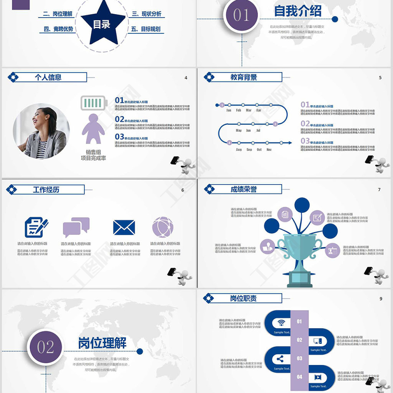 工圖網(wǎng)提供2019年大氣藍色紫色崗位競聘PPT模板供會員免費下載。更多精彩黨課PPT素材,盡在工圖網(wǎng)。