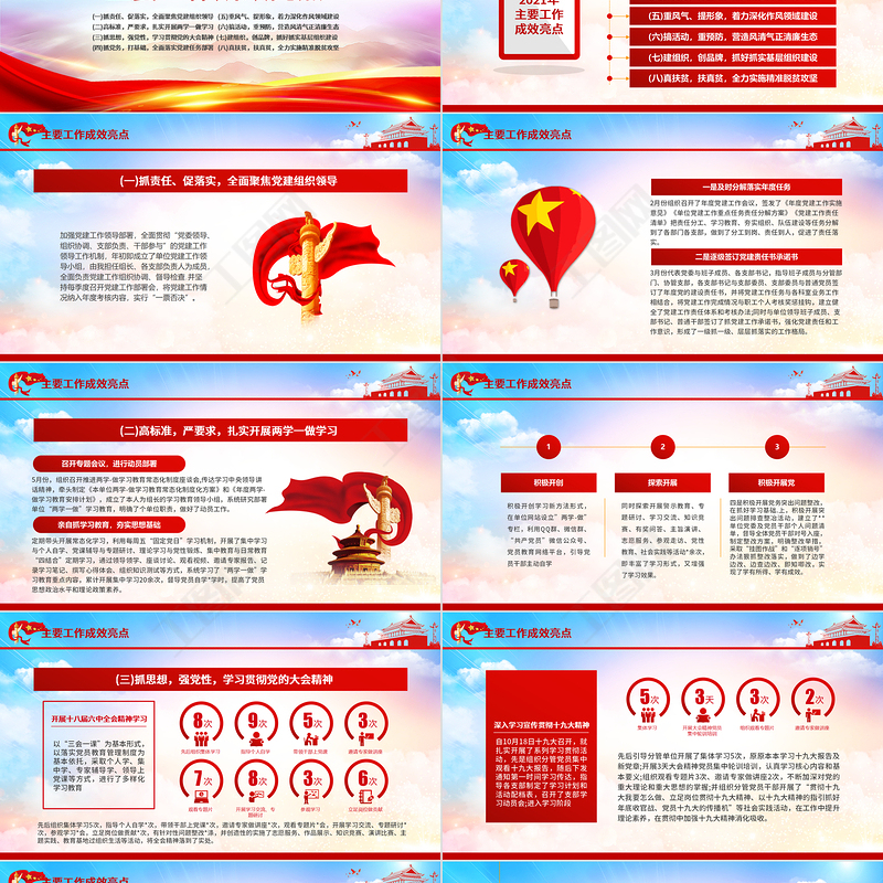 主要工作成效亮點(diǎn)(一)抓責(zé)任、促落實(shí),全面聚焦黨建組織領(lǐng)導(dǎo)(二)高標(biāo)準(zhǔn),嚴(yán)要求,扎實(shí)開展兩學(xué)一做學(xué)習(xí)(三)抓思想,強(qiáng)黨性,學(xué)習(xí)貫徹黨的大會(huì)精神(四)抓黨務(wù),打基礎(chǔ),全面落實(shí)黨建任務(wù)部署(五)重風(fēng)氣、提形象,著力深化作風(fēng)領(lǐng)域建設(shè)(六)搞活動(dòng),重預(yù)防,營造風(fēng)清氣正清廉生態(tài)(七)建組織,創(chuàng)品牌,抓好抓實(shí)基層組織建設(shè)(八)真扶貧,扶真貧,全力實(shí)施精準(zhǔn)脫貧攻堅(jiān)2021年主要工作成效亮點(diǎn)