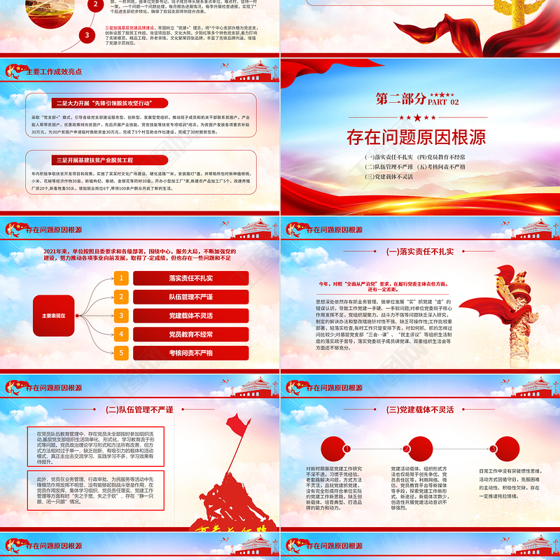 存在問題原因根源(一)落實(shí)責(zé)任不扎實(shí) (四)黨員教育不經(jīng)常(二)隊(duì)伍管理不嚴(yán)謹(jǐn) (五)考核問責(zé)不嚴(yán)格(三)黨建載體不靈活