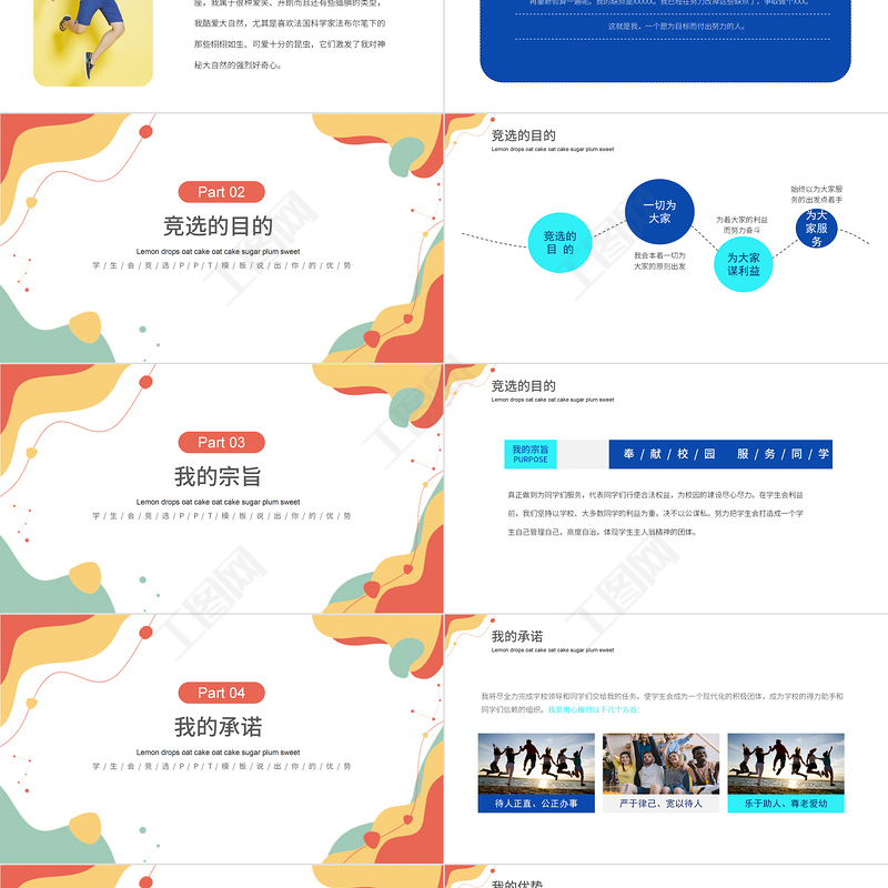 學(xué)/生/會(huì)/競/選/P/P/T/模/板/說/出/你/的/優(yōu)/勢我將盡全力完成學(xué)校領(lǐng)導(dǎo)和同學(xué)們交給我的任務(wù),使學(xué)生會(huì)成為一個(gè)現(xiàn)代化的積極團(tuán)體,成為學(xué)校的得力助手和同學(xué)們信賴的組織。我要用心做到以下幾個(gè)方面:我的承諾Lemon drops oat cake oat cake sugar plum sweet