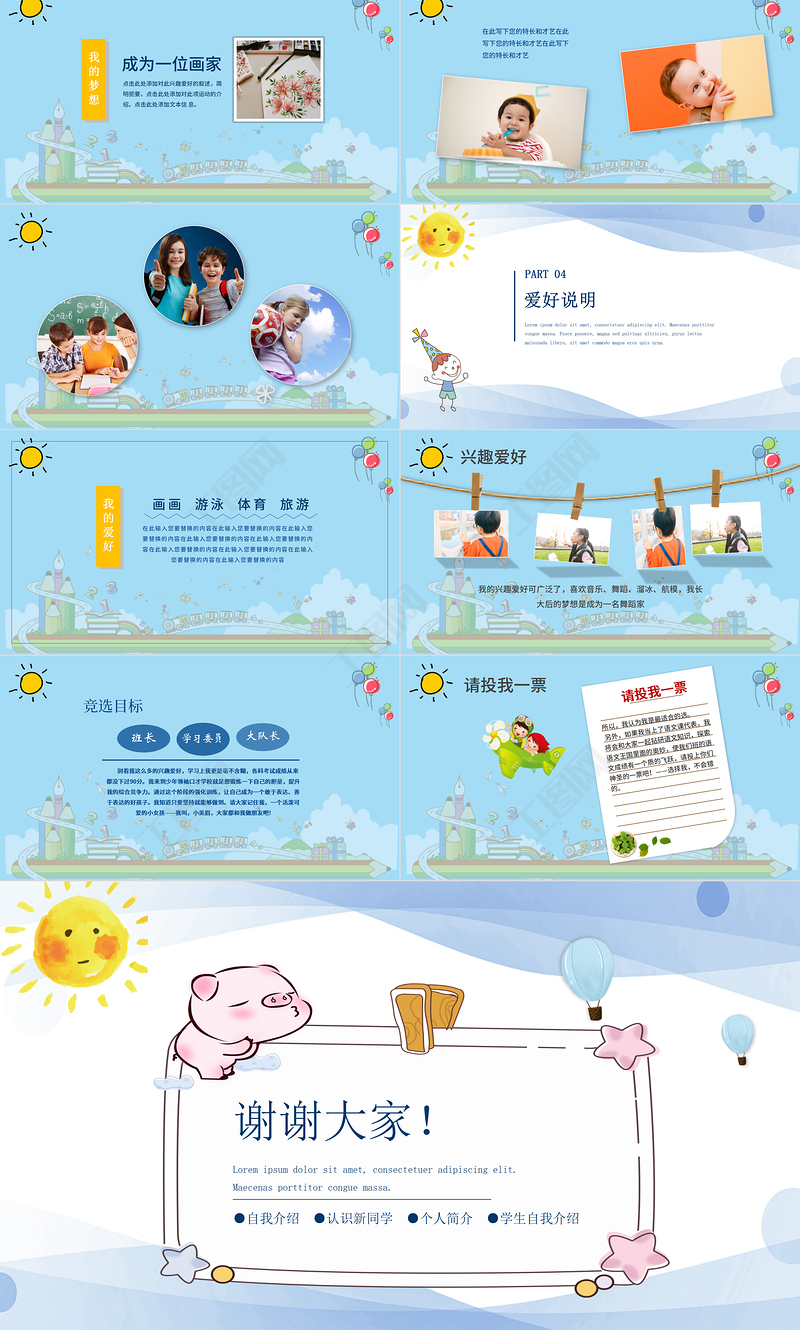 卡通,簡約,時(shí)尚,班干部,競選,PPT模板 Array