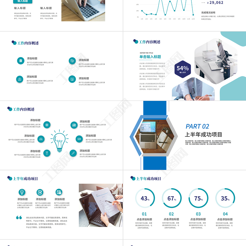 工圖網提供上半年工作總結下半年工作計劃PPT清新幾何風格年中工作總結計劃述職匯報報告模板供會員免費下載。更多精彩黨課PPT素材,盡在工圖網。