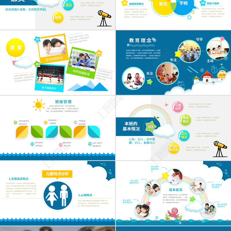 <p>小學生/幼兒園HUIJIAZHANG辦圖網(wǎng)設計部</p><br><p>首先,對各位家長能在百忙之中抽出時間來參加這次家長會表示深深的感謝!召開這次家長會的目的是為了加強老師與家長之間的聯(lián)系,相互交流一下學生在校及在家的情況,以便我們能夠及時調(diào)整工作,提高教育教學質(zhì)量,同時促使家長也能夠積極參與到學生的教育管理中來。總之一句話,就是“一切為了孩子”。這是我們教育的一個根本出發(fā)點。我希望也相信,從這個出發(fā)點出發(fā),我們的家長會一定能夠達到預期的效果,取得圓滿的成功!下面我把本班的有關(guān)情況向家長們做個匯報:尊敬的各位家長,大家好!</p><br><p>班級介紹給家長們的建議家長會的意義新學期的工作安排目錄Directory</p><br><p>家長會的意義促進交流與合作,達成教育共識。點擊輸入簡要文字內(nèi)容,文字內(nèi)容需概括精煉,言簡意賅的說明內(nèi)容……點擊輸入簡要文字內(nèi)容,文字內(nèi)容需概括精煉,言簡意賅的說明內(nèi)容……點擊輸入簡要文字內(nèi)容,文字內(nèi)容需概括精煉,言簡意賅的說明內(nèi)容……點擊輸入簡要文字內(nèi)容,文字內(nèi)容需概括精煉,言簡意賅的說明內(nèi)容……</p><br><p>目的點擊輸入簡要文字內(nèi)容,文字內(nèi)容需概括精煉,言簡意賅的說明內(nèi)容……點擊輸入簡要文字內(nèi)容,文字內(nèi)容需概括精煉,言簡意賅的說明內(nèi)容……加強家校聯(lián)系點擊輸入簡要文字內(nèi)容,文字內(nèi)容需概括精煉,言簡意賅的說明內(nèi)容……點擊輸入簡要文字內(nèi)容,文字內(nèi)容需概括精煉,言簡意賅的說明內(nèi)容……探討教育方法點擊輸入簡要文字內(nèi)容,文字內(nèi)容需概括精煉,言簡意賅的說明內(nèi)容……點擊輸入簡要文字內(nèi)容,文字內(nèi)容需概括精煉,言簡意賅的說明內(nèi)容……給孩子鼓勁點擊輸入簡要文字內(nèi)容,文字內(nèi)容需概括精煉,言簡意賅的說明內(nèi)容…點擊輸入簡要文字內(nèi)容,文字內(nèi)容需概括精煉,言簡意賅的說明內(nèi)容…學生家長學校</p><br><p>點擊輸入簡要文字內(nèi)容,文字內(nèi)容需概括精煉,言簡意賅的說明內(nèi)容,點擊輸入簡要文字內(nèi)容,點擊輸入簡要文字內(nèi)容,文字內(nèi)容需概括精煉,言簡意賅的說明內(nèi)容,點擊輸入簡要文字內(nèi)容,點擊輸入簡要文字內(nèi)容,文字內(nèi)容需概括精煉,言簡意賅的說明內(nèi)容,點擊輸入簡要文字內(nèi)容,</p><br><p>教育理念點擊輸入簡要文字內(nèi)容,文字內(nèi)容需概括精煉,言簡意賅的說明內(nèi)容……點擊輸入簡要文字內(nèi)容,文字內(nèi)容需概括精煉,言簡意賅的說明內(nèi)容……點擊輸入簡要文字內(nèi)容,文字內(nèi)容需概括精煉,言簡意賅的說明內(nèi)容……專注關(guān)注引導主動</p><br><p>嚴格要求, 自主管理培養(yǎng)勇敢堅韌有抱負的人培養(yǎng)良好的 道德品質(zhì)培養(yǎng)良好的 心理素質(zhì)培養(yǎng)良好的 學習習慣讓每一位孩子都健康成功!班級管理 點擊輸入簡要文字內(nèi)容,文字內(nèi)容需概括 精煉,言簡意賅的說明內(nèi)容……點擊輸入簡要文字內(nèi)容,文字內(nèi)容需概括精煉,言簡意賅的說明內(nèi)容……</p><br><p> 本班的基本情況人數(shù):35人,其中男孩:15人,女孩18人點擊輸入簡要文字內(nèi)容,文字內(nèi)容需概括精煉,言簡意賅的說明內(nèi)容……點擊輸入簡要文字內(nèi)容,文字內(nèi)容需概括精煉,言簡意賅的說明內(nèi)容……點擊輸入簡要文字內(nèi)容,文字內(nèi)容需概括精煉,言簡意賅的說明內(nèi)容……點擊輸入簡要文字內(nèi)容,文字內(nèi)容需概括精煉,言簡意賅的說明內(nèi)容……</p><br><p>1.生理發(fā)育特點青少年時期是一個生理與心理急劇變化的時期,是人的一生中最不穩(wěn)定的時期,期間有對未來最樂觀的憧憬,但是也充滿了發(fā)生各種不幸的可能。埃里克森認為青春期最主要的兩個問題是:“我是誰?”“我將走向何方?”,即建立同一性的問題。2.心理特點在這個關(guān)鍵時期我們有必要提醒家長和青少年:他們需要立志,需要準備承擔大任,經(jīng)受艱苦磨練,需要學習抵御各種風險的能力。? </p><br><p>基本狀況點擊輸入簡要文字內(nèi)容,文字內(nèi)容需概括精煉,言簡意賅的說明內(nèi)容……點擊輸入簡要文字內(nèi)容,文字內(nèi)容需概括精煉,言簡意賅的說明內(nèi)容……輸入標題或說明文字輸入標題和說明文字 輸入標題和說明文字輸入標題和說明文字輸入標題或說明文字</p><br><p>本班學生[ 特 點 ]優(yōu) 點不 足基礎(chǔ)相對較好樂觀 活 躍貪玩懶散自我控制能力差集體觀念淡薄</p><br><p>點擊輸入簡要文字內(nèi)容,文字內(nèi)容需概括精煉,言簡意賅的說明內(nèi)容……點擊輸入簡要文字內(nèi)容,文字內(nèi)容需概括精煉,言簡意賅的說明內(nèi)容……輸入文本標題輸入文本標題點擊輸入簡要文字內(nèi)容,文字內(nèi)容需概括精煉,言簡意賅的說明內(nèi)容……輸入文本標題點擊輸入簡要文字內(nèi)容,文字內(nèi)容需概括精煉,言簡意賅的說明內(nèi)容……輸入文本標題問題分析</p><br><p>環(huán)境及設施點擊輸入簡要文字內(nèi)容,文字內(nèi)容需概括精煉,言簡意賅的說明內(nèi)容……點擊輸入簡要文字內(nèi)容,文字內(nèi)容需概括精煉,言簡意賅的說