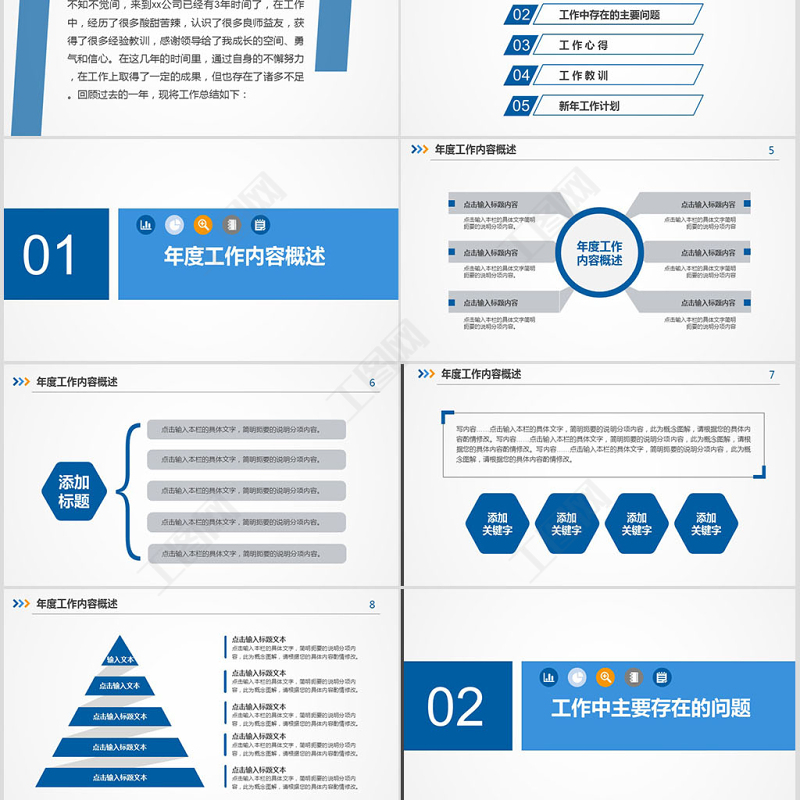 工圖網(wǎng)提供大氣簡(jiǎn)潔藍(lán)色工作總結(jié)年終總結(jié)匯報(bào)工作計(jì)劃動(dòng)態(tài)PPT模板供會(huì)員免費(fèi)下載。更多精彩黨課PPT素材,盡在工圖網(wǎng)。