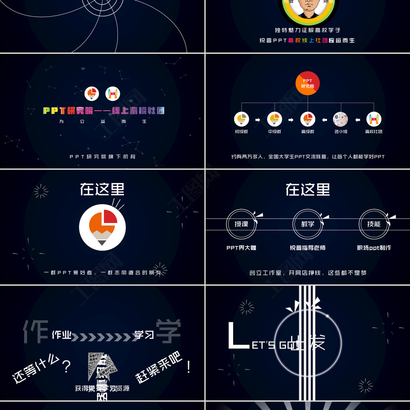 PPT研究院高校線上社團(tuán)介紹ppt動(dòng)感宣傳片 Array