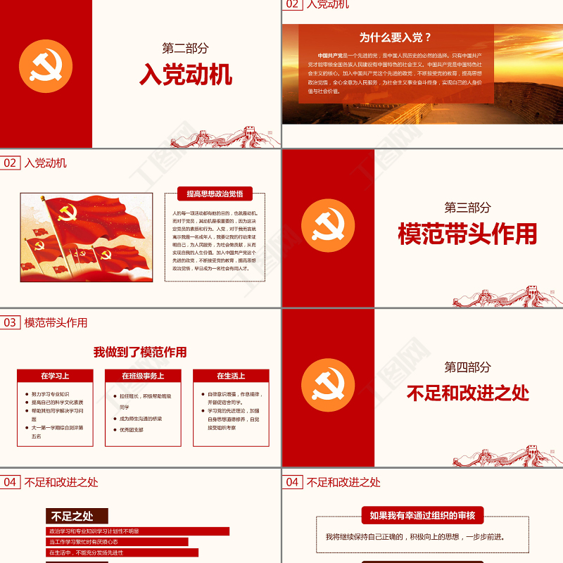 工圖網(wǎng)提供入黨答辯PPT模板發(fā)展對象自我介紹演講稿供會員免費下載。更多精彩黨課PPT素材,盡在工圖網(wǎng)。