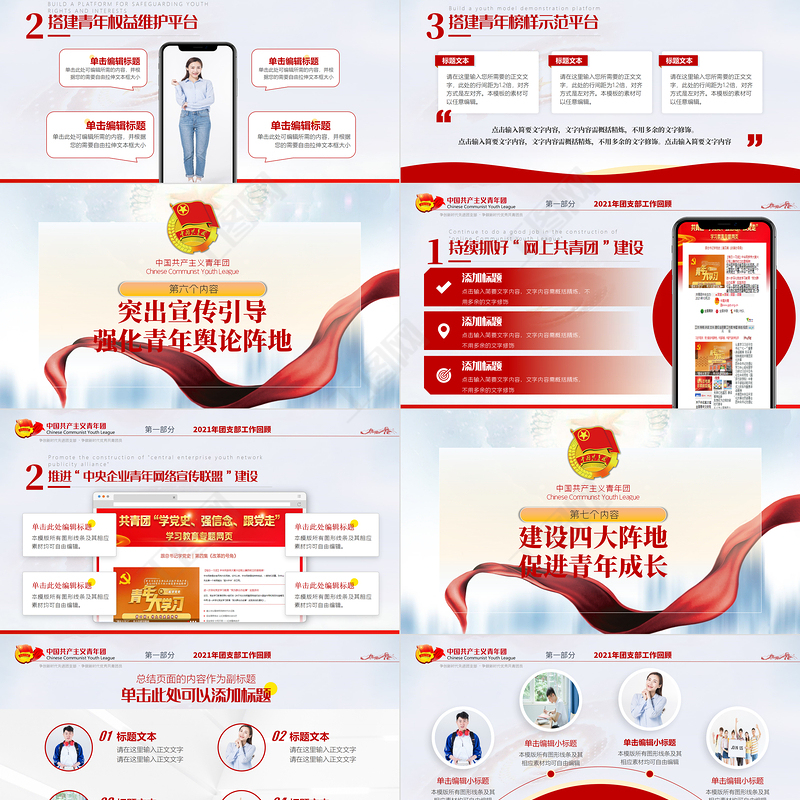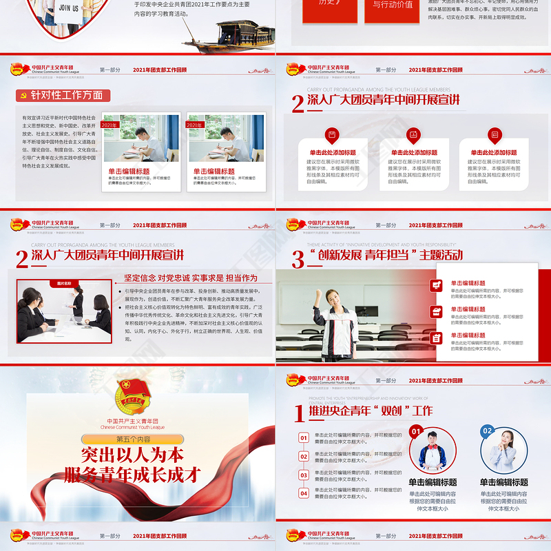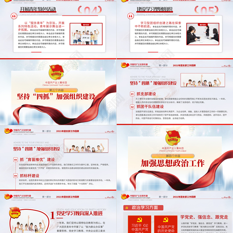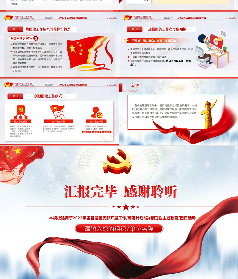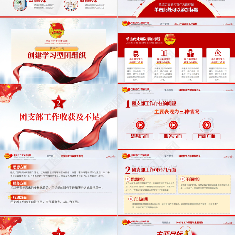 2022團委團支部PPT大氣黨政風共青團工作總結工作計劃述職匯報模板 Array