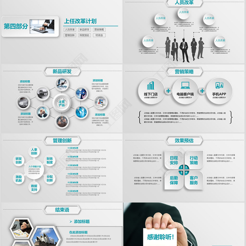 第四部分上任改革計(jì)劃人員改革新品研發(fā)營銷策略管理創(chuàng)新效果預(yù)估結(jié)束語