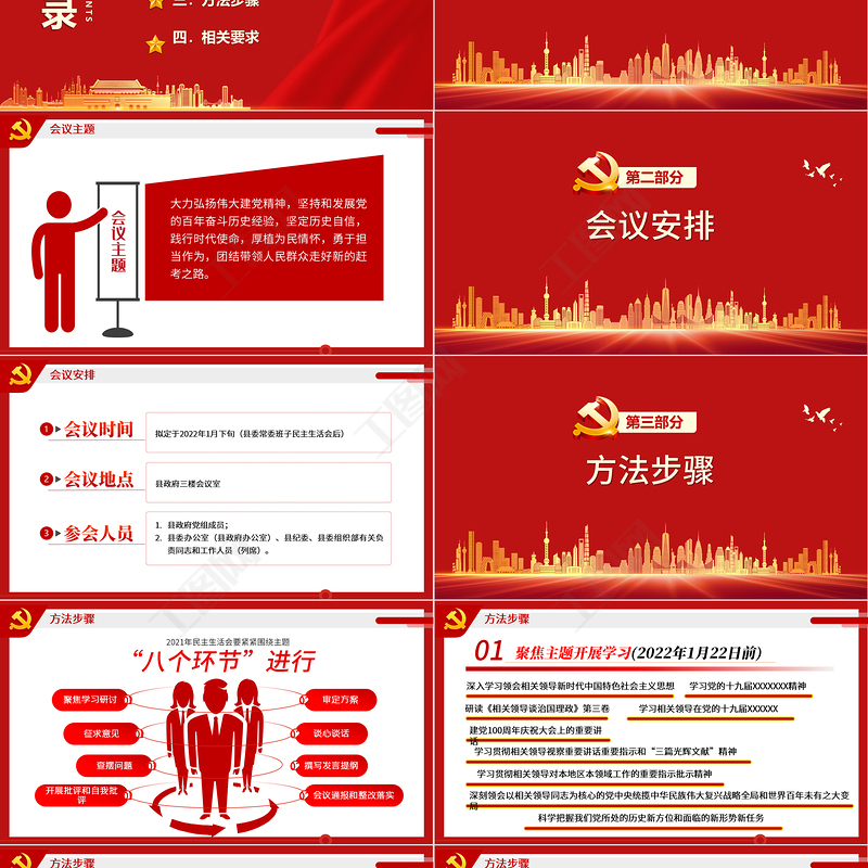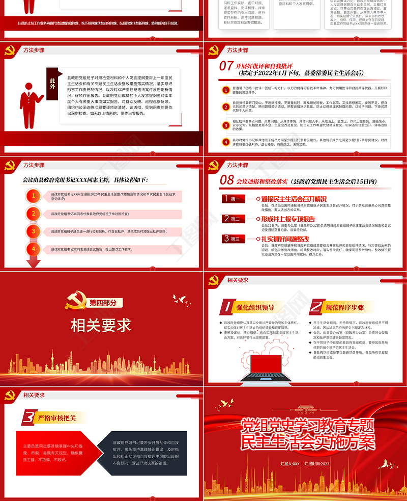工圖網(wǎng)提供黨組黨史學(xué)習(xí)教育專題民主生活會(huì)實(shí)施方案PPT紅色簡約大氣風(fēng)黨員干部專題黨課課件供會(huì)員免費(fèi)下載。更多精彩黨課PPT素材,盡在工圖網(wǎng)。