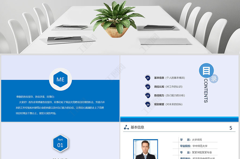 工圖網(wǎng)提供PPT個(gè)人簡(jiǎn)歷求職競(jìng)聘述職報(bào)告大氣模板模版幻燈供會(huì)員免費(fèi)下載。更多精彩黨課PPT素材,盡在工圖網(wǎng)。