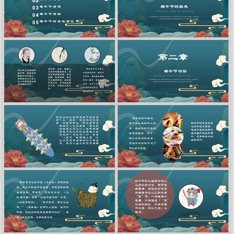 ppt,模板,中國(guó)風(fēng),插畫(huà)風(fēng),端午節(jié),文化,習(xí)俗,介紹,粽子,綠色 Array