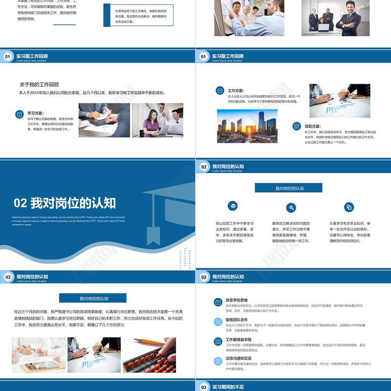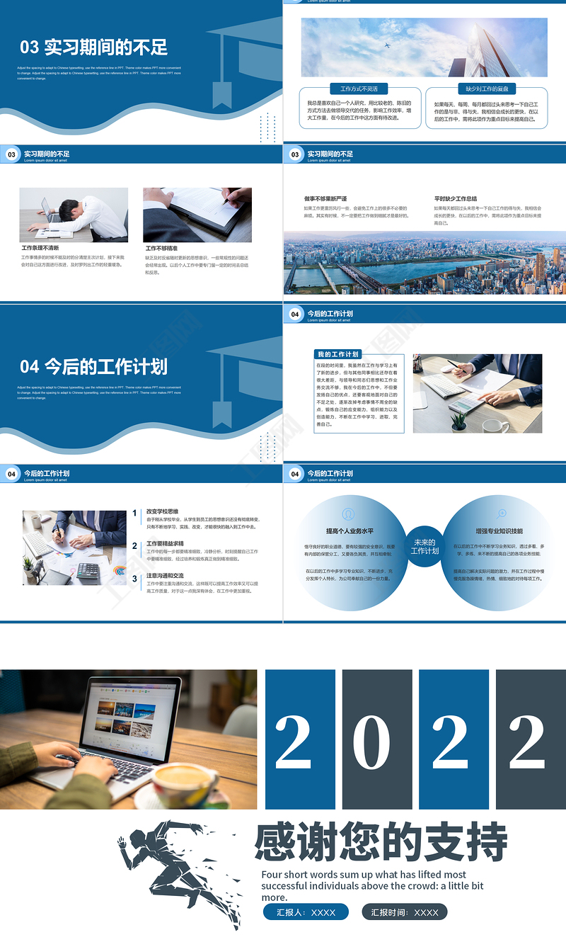 2022轉(zhuǎn)正述職報告PPT藍色大氣實習(xí)生轉(zhuǎn)正個人轉(zhuǎn)正述職工作報告模板 Array