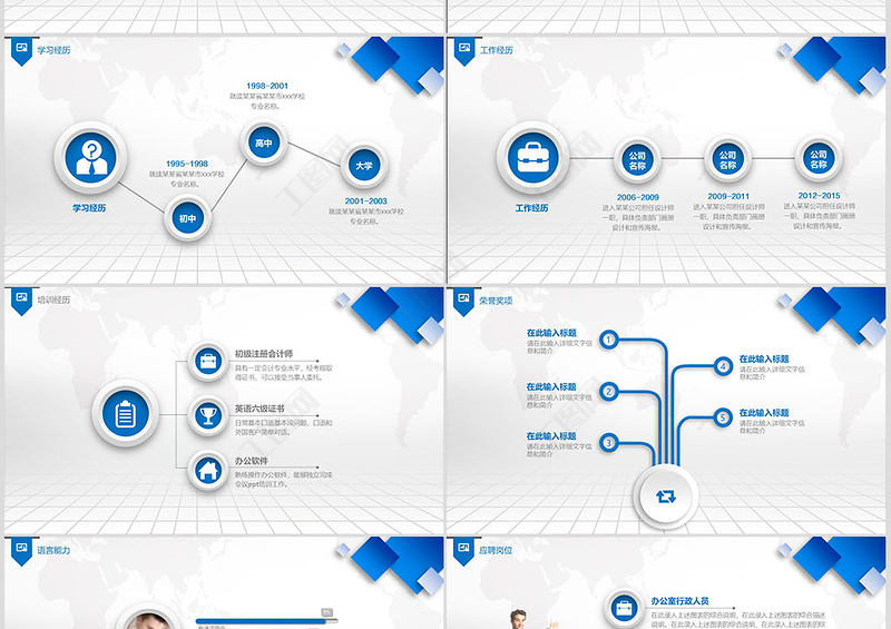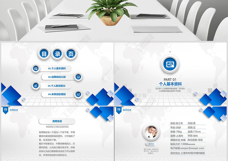 工圖網(wǎng)提供藍色時尚崗位競聘個人簡歷自我介紹PPT模板供會員免費下載。更多精彩黨課PPT素材,盡在工圖網(wǎng)。