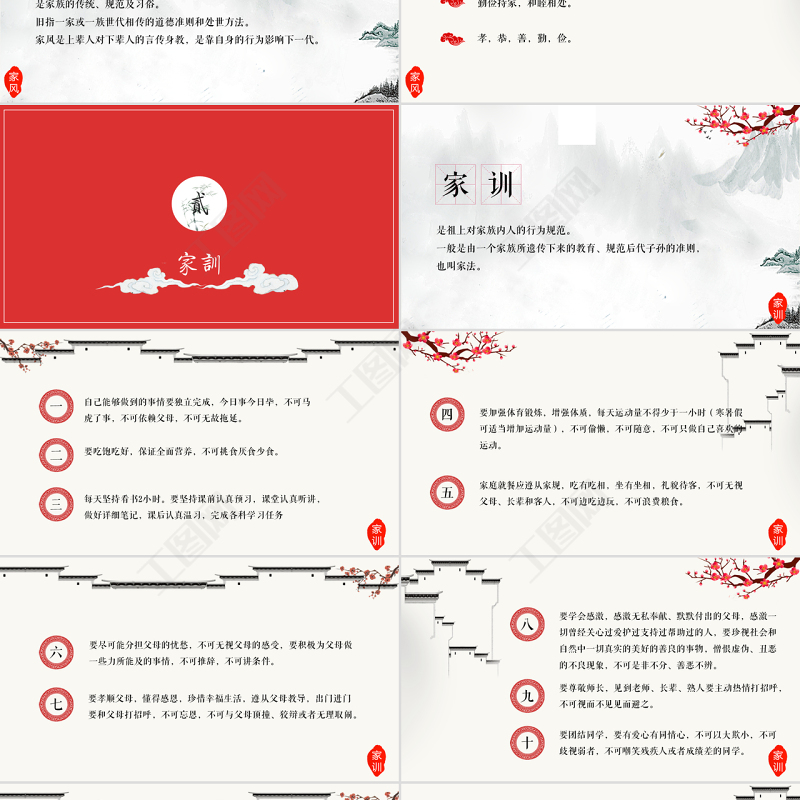 工圖網(wǎng)提供中國(guó)風(fēng)中國(guó)傳統(tǒng)文化家風(fēng)家訓(xùn)ppt模板供會(huì)員免費(fèi)下載。更多精彩黨課PPT素材,盡在工圖網(wǎng)。