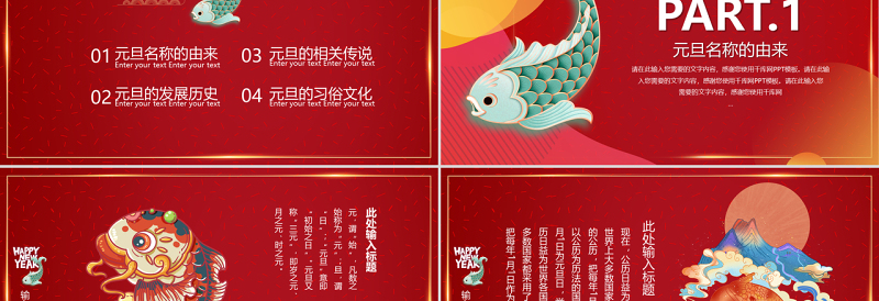 紅色,漸變,折紙,中國風(fēng),新年快樂,元旦,新年,2020,中式,國潮,古風(fēng),內(nèi)容,傳統(tǒng),PPT,模板 Array
