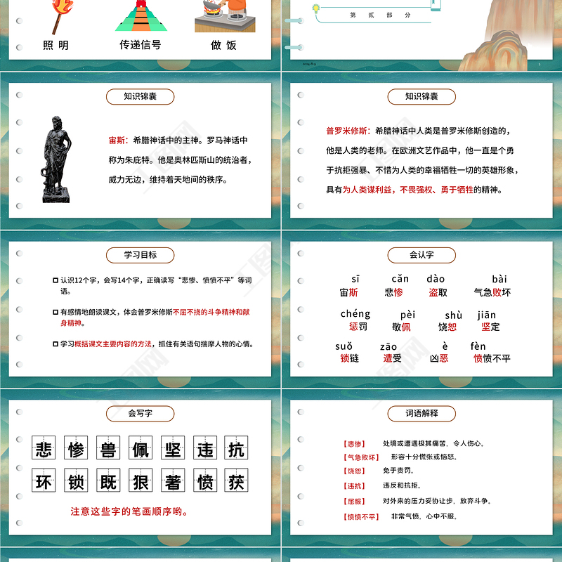 宙斯悲慘cǎn盜取dào氣急敗壞bài懲罰chéng敬佩pèi饒恕shù堅(jiān)定jiān鎖鏈suǒ遭受zāosī兇惡è憤憤不平fèn會(huì)認(rèn)字