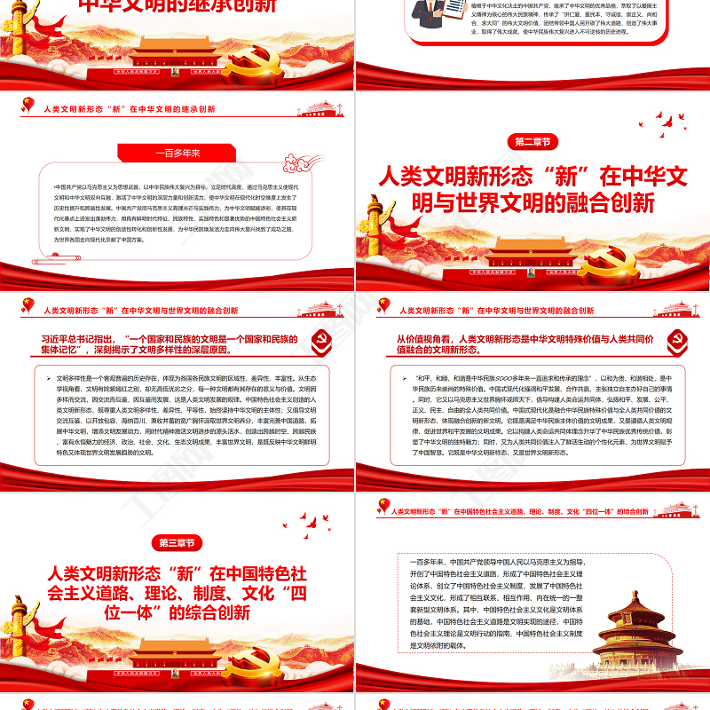 黨領導人民創(chuàng)造了人類文明新形態(tài)PPT紅色黨政風黨員干部學習教育專題黨課課件包含
