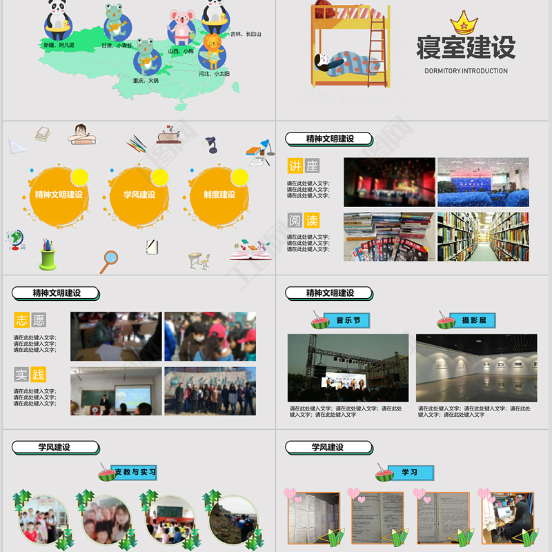 <p>寢室文化節(jié)校園優(yōu)秀寢室/宿舍展示評(píng)選PPT模板</p><br><p>CONTENTS寢室簡(jiǎn)介未來(lái)展望特色活動(dòng)成果展示寢室建設(shè)</p><br><p>寢室簡(jiǎn)介DORMITORY INTRODUCTION</p><br><p>成員介紹新疆,阿凡提甘肅,小青蛙重慶,火鍋山西,小梅河北,小太陽(yáng)吉林,長(zhǎng)白山</p><br><p>寢室建設(shè)DORMITORY INTRODUCTION</p><br><p>精神文明建設(shè)學(xué)風(fēng)建設(shè)制度建設(shè)</p><br><p>精神文明建設(shè)請(qǐng)?jiān)诖颂庢I入文字;請(qǐng)?jiān)诖颂庢I入文字;請(qǐng)?jiān)诖颂庢I入文字;請(qǐng)?jiān)诖颂庢I入文字;請(qǐng)?jiān)诖颂庢I入文字;請(qǐng)?jiān)诖颂庢I入文字;</p><br><p>精神文明建設(shè)請(qǐng)?jiān)诖颂庢I入文字;請(qǐng)?jiān)诖颂庢I入文字;請(qǐng)?jiān)诖颂庢I入文字;請(qǐng)?jiān)诖颂庢I入文字;請(qǐng)?jiān)诖颂庢I入文字;請(qǐng)?jiān)诖颂庢I入文字;</p><br><p>精神文明建設(shè)請(qǐng)?jiān)诖颂庢I入文字;請(qǐng)?jiān)诖颂庢I入文字;請(qǐng)?jiān)诖颂庢I入文字;請(qǐng)?jiān)诖颂庢I入文字請(qǐng)?jiān)诖颂庢I入文字;請(qǐng)?jiān)诖颂庢I入文字;請(qǐng)?jiān)诖颂庢I入文字;請(qǐng)?jiān)诖颂庢I入文字音樂(lè)節(jié)攝影展</p><br><p>學(xué)風(fēng)建設(shè)請(qǐng)?jiān)诖颂庢I入文字;請(qǐng)?jiān)诖颂庢I入文字;請(qǐng)?jiān)诖颂庢I入文字;請(qǐng)?jiān)诖颂庢I入文字;請(qǐng)?jiān)诖颂庢I入文字;請(qǐng)?jiān)诖颂庢I入文字;請(qǐng)?jiān)诖颂庢I入文字;請(qǐng)?jiān)诖颂庢I入文字支教與實(shí)習(xí)</p><br><p>學(xué)風(fēng)建設(shè)請(qǐng)?jiān)诖颂庢I入文字;請(qǐng)?jiān)诖颂庢I入文字;請(qǐng)?jiān)诖颂庢I入文字;請(qǐng)?jiān)诖颂庢I入文字;請(qǐng)?jiān)诖颂庢I入文字;請(qǐng)?jiān)诖颂庢I入文字;請(qǐng)?jiān)诖颂庢I入文字;請(qǐng)?jiān)诖颂庢I入文字學(xué)習(xí)</p><br><p>學(xué)風(fēng)建設(shè)請(qǐng)?jiān)诖颂庢I入文字;請(qǐng)?jiān)诖颂庢I入文字;請(qǐng)?jiān)诖颂庢I入文字;請(qǐng)?jiān)诖颂庢I入文字;請(qǐng)?jiān)诖颂庢I入文字;請(qǐng)?jiān)诖颂庢I入文字;請(qǐng)?jiān)诖颂庢I入文字;請(qǐng)?jiān)诖颂庢I入文字科研</p><br><p>制度建設(shè)衛(wèi)生紀(jì)律寢費(fèi)管理每天整理,保持整潔垃圾入簍,垃圾下樓輪流清掃按時(shí)歸寢,減小干擾物品擺放整齊有序嚴(yán)格宿舍的作息時(shí)間每人上交相應(yīng)的舍費(fèi)用于購(gòu)置公共用品每次支出公開</p><br><p>特色活動(dòng)DORMITORY INTRODUCTION</p><br><p>特色活動(dòng)哈爾濱沈陽(yáng)地理人走四方請(qǐng)?jiān)诖颂庢I入文字;請(qǐng)?jiān)诖颂庢I入文字;請(qǐng)?jiān)诖颂庢I入文字;請(qǐng)?jiān)诖颂庢I入文字;請(qǐng)?jiān)诖颂庢I入文字;請(qǐng)?jiān)诖颂庢I入文字;請(qǐng)?jiān)诖颂庢I入文字;請(qǐng)?jiān)诖颂庢I入文字</p><br><p>特色活動(dòng)延吉、內(nèi)蒙行感受朝鮮族特色了解沙漠地貌、扎帳篷延吉內(nèi)蒙</p><br><p>成果展示DORMITORY INTRODUCTION</p><br><p>集體榮譽(yù)2017年度“宿舍文化節(jié)”活動(dòng)中榮獲二等獎(jiǎng)</p><br><p>個(gè)人榮譽(yù) 全寢過(guò)四級(jí)英語(yǔ)達(dá)人秀三等獎(jiǎng)英語(yǔ)計(jì)算機(jī)普通話全寢過(guò)二級(jí)全寢過(guò)通過(guò)等級(jí)考試</p><br><p>成績(jī)3大一大二班級(jí)前五所占名額1一等獎(jiǎng)學(xué)金2二等獎(jiǎng)學(xué)金1三等獎(jiǎng)學(xué)金5班級(jí)前十所占名額1國(guó)家勵(lì)志獎(jiǎng)學(xué)金1校長(zhǎng)獎(jiǎng)學(xué)金3二等獎(jiǎng)學(xué)金1三等獎(jiǎng)學(xué)金4 人為基地班成員</p><br><p>科研參加 4 項(xiàng)科研項(xiàng)目,3 個(gè)成功立項(xiàng);且均為小組負(fù)責(zé)人,1 個(gè)已優(yōu)秀結(jié)項(xiàng)。1項(xiàng)國(guó)創(chuàng)項(xiàng)目1項(xiàng)科研項(xiàng)目1項(xiàng)專項(xiàng)計(jì)劃項(xiàng)目1項(xiàng)已結(jié)項(xiàng)目</p><br><p>學(xué)干校紅燭理論調(diào)研助理校宿管會(huì)三舍C層長(zhǎng)卓音工作室正式成員大體俱樂(lè)部籃球部副部長(zhǎng)綠動(dòng)志愿者協(xié)會(huì)環(huán)教部干事巴蜀文化協(xié)會(huì)干事宿舍安全疏散引導(dǎo)員校級(jí)院級(jí)班級(jí)團(tuán)委秘書處副秘書長(zhǎng)團(tuán)委秘書處秘書長(zhǎng)學(xué)生會(huì)女生部副部長(zhǎng)學(xué)生會(huì)實(shí)踐部副部長(zhǎng)紅燭協(xié)會(huì)培訓(xùn)部部長(zhǎng)紅燭協(xié)會(huì)培訓(xùn)部副部長(zhǎng)學(xué)生會(huì)宣傳部干事啟思協(xié)會(huì)外聯(lián)部干事青馬協(xié)會(huì)培訓(xùn)部干事二班班長(zhǎng)二班宣傳委員一班宣傳委員二班學(xué)習(xí)委員</p><br><p>實(shí)踐吉林省數(shù)學(xué)建模二等獎(jiǎng)“互聯(lián)網(wǎng)+”大學(xué)生創(chuàng)新創(chuàng)業(yè)大賽二等獎(jiǎng)“黨史團(tuán)情知識(shí)競(jìng)賽”一等獎(jiǎng)</p><br><p>實(shí)踐暑期社會(huì)實(shí)踐榮獲二等獎(jiǎng)“實(shí)習(xí)回來(lái)了”二等獎(jiǎng)全國(guó)高??破誋5制作大賽佳作獎(jiǎng)</p><br><p>志愿5人分別前往內(nèi)蒙古,河南,湖南,云南志愿支教;積極參加紅燭公益活動(dòng)。</p><br><p>未來(lái)展望DORMITORY INTRODUCTION</p><br><p>感恩相遇,一路陪伴!全新的317,我們將揚(yáng)帆起航,共同攜手,成長(zhǎng)進(jìn)步!</p><br><p>寢室文化節(jié)校園優(yōu)秀寢室/宿舍展示評(píng)選PPT模板</p><br>