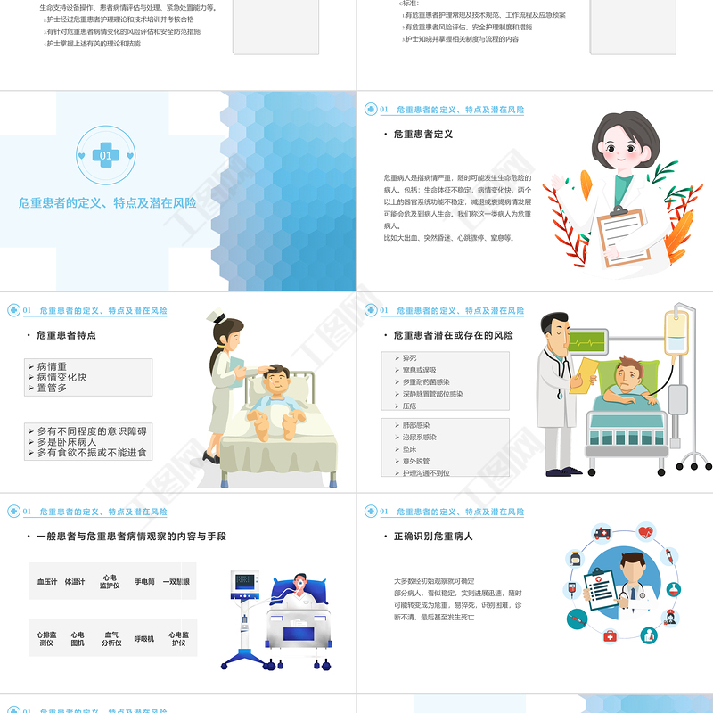 Hospital namewww.yiyuan.comContents/目錄危重患者的定義、特點及潛在風險危重患者護理觀察的要點危重患者 的基礎護理及心理護理危重患者的護理安全與風險管理