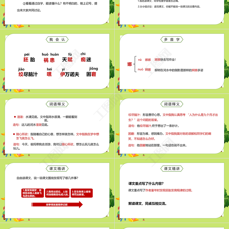 我在九歲的時(shí)候就發(fā)現(xiàn)了有關(guān)胚胎發(fā)育的規(guī)律,這完全是我獨(dú)立思考的結(jié)果。人為什么會(huì)在夢(mèng)中飛行?人究竟是從哪里來(lái)的?為了弄清楚這問(wèn)題,“我”經(jīng)歷了一個(gè)怎樣的探究過(guò)程?結(jié)果怎樣?課文精講