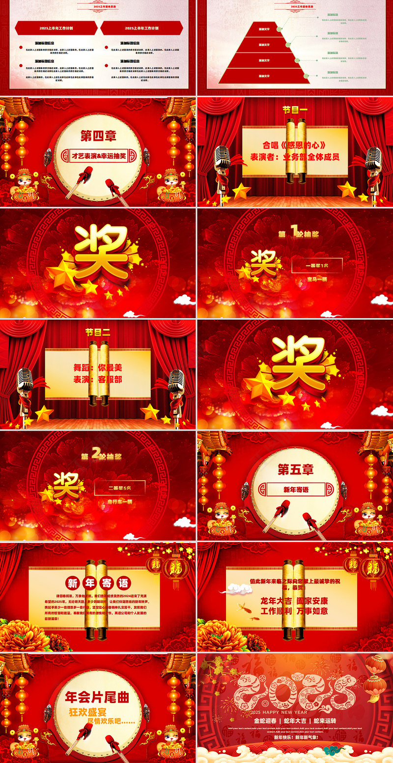 紅色精美2025蛇年大吉PPT金蛇迎春企業(yè)公司通用課件 Array