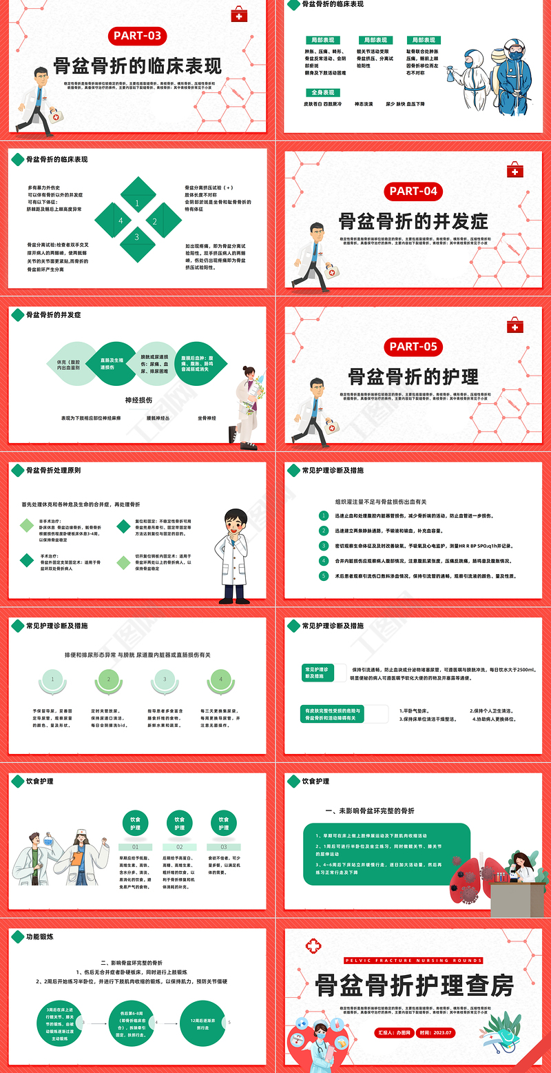 2023骨盆骨折護(hù)理查房PPT插畫風(fēng)骨盆骨折護(hù)理查房醫(yī)療課件模板下載 Array