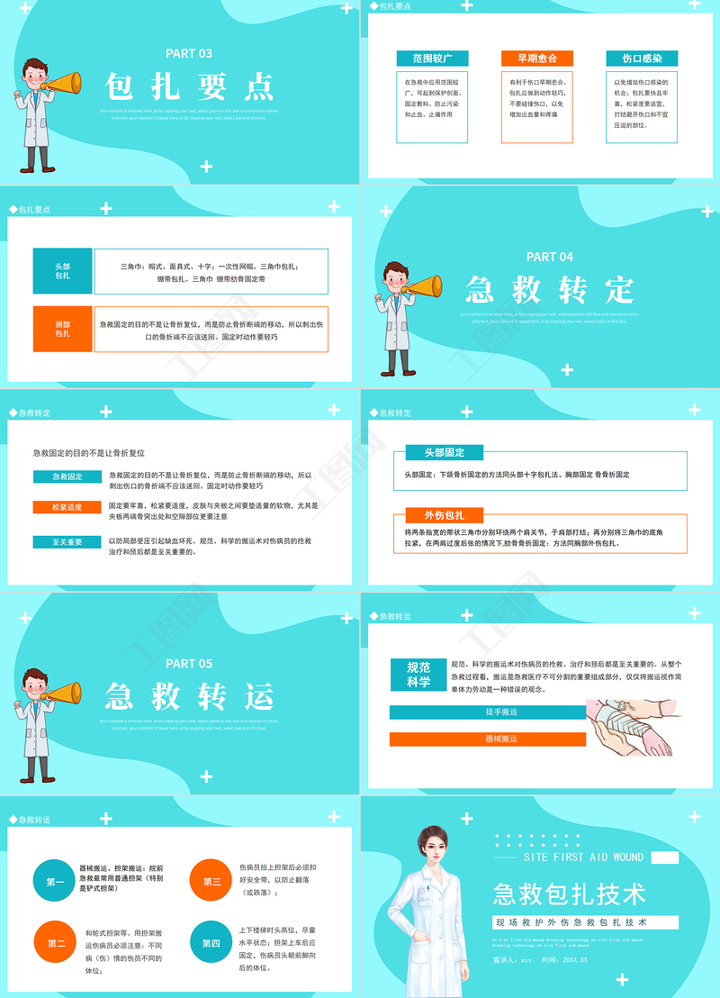 工圖網(wǎng)提供2022醫(yī)療急救包扎技術(shù)PPT清新扁平風(fēng)醫(yī)療培訓(xùn)通用PPT供會(huì)員免費(fèi)下載。更多精彩黨課PPT素材,盡在工圖網(wǎng)。