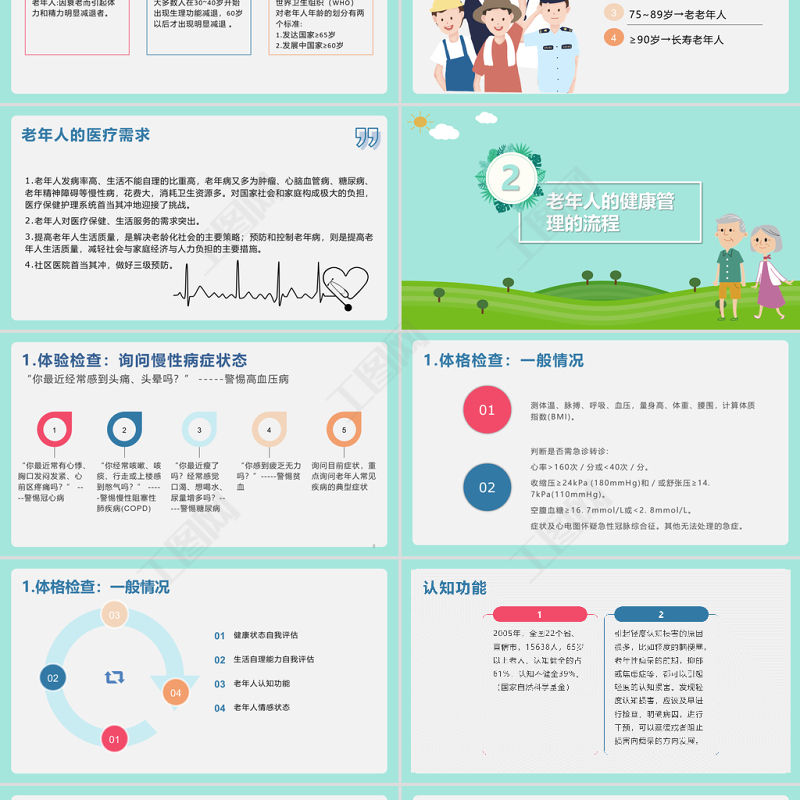 工圖網提供清新藍色卡通矢量老年人健康管理PPT供會員免費下載。更多精彩黨課PPT素材,盡在工圖網。