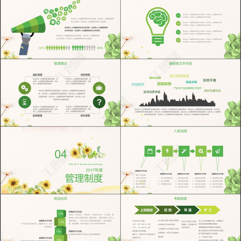 工圖網(wǎng)提供綠色向日葵清新簡(jiǎn)潔新員工入職手冊(cè)PPT供會(huì)員免費(fèi)下載。更多精彩黨課PPT素材,盡在工圖網(wǎng)。