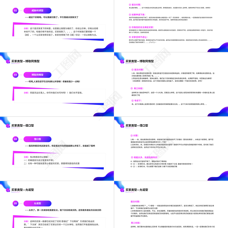 買家類型—允諾型——太貴了,第一次來你給我便宜點(diǎn),我下次會(huì)再來買的,還有很多朋友也會(huì)來買的
