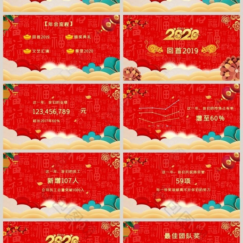 2020鼠年年會 2020年會 紅色喜慶新年晚會PPT模板 Array